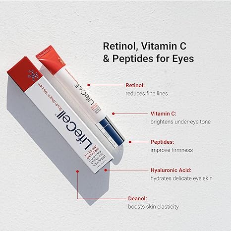 LifeCell All-in-One Eye Treatment – Anti-Aging Under Eye Cream for Puffiness, Dark Circles & Wrinkles – With Retinol, Vitamin C, Peptides & Hyaluronic Acid – Cooling Application